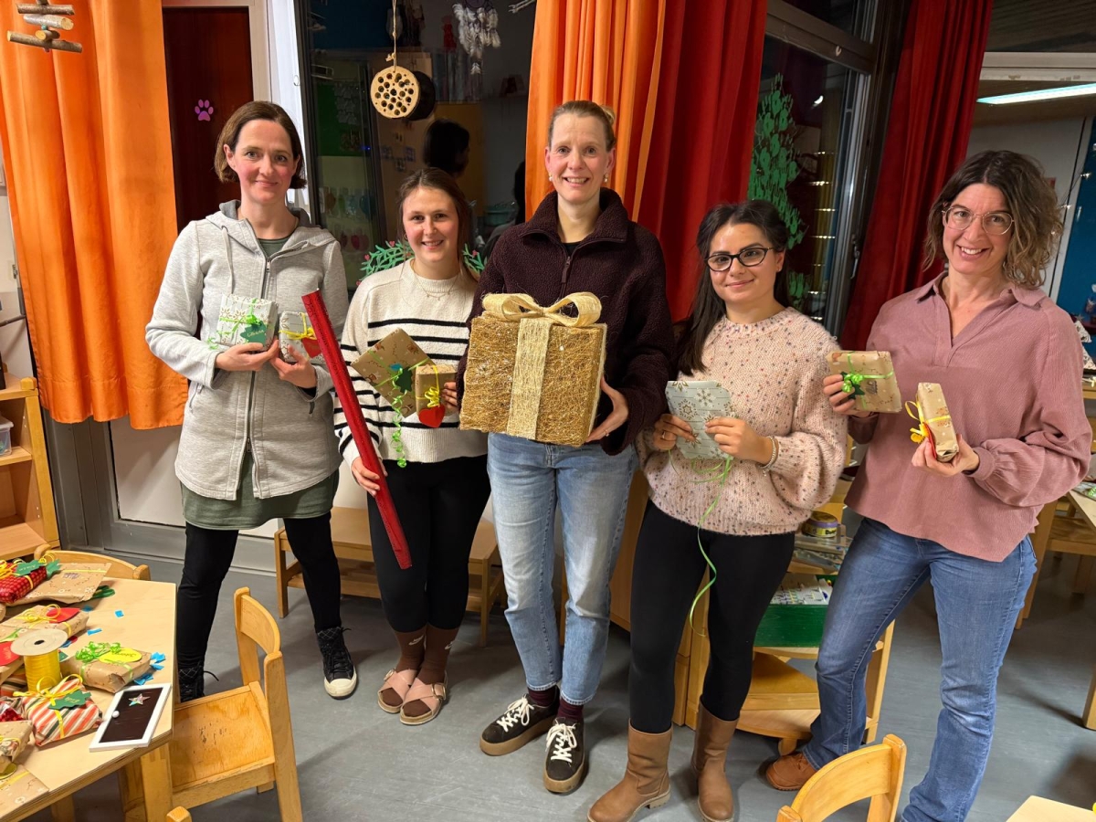 An diesem Abend werden parallel die Päckchen für die Adventskalender jeder Gruppe liebevoll verpackt.